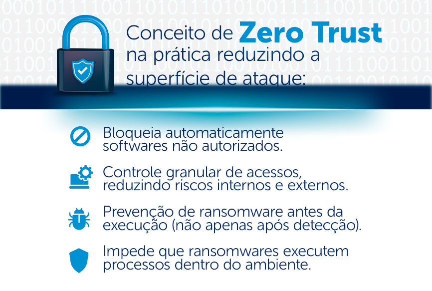 O ThreatLocker atua como uma camada de controle granular sobre todo o ambiente. Ele aplica a política de “negar tudo por padrão”, só permitindo a execução de aplicações previamente autorizadas. Além disso, cria barreiras de controle de acesso para evitar movimentações laterais dentro da rede, uma técnica comum usada por ransomwares e hackers após invadir um endpoint.