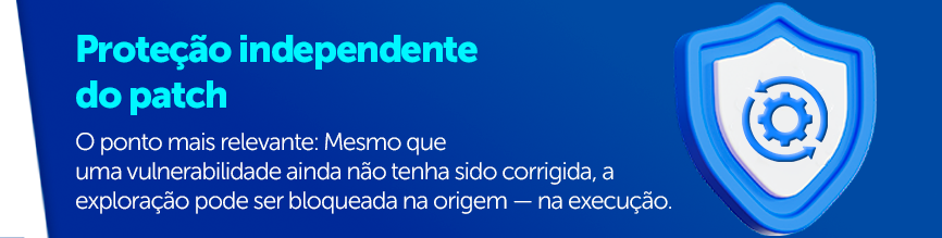 Essa combinação atua em duas frentes complementares: redução da janela de exposição e bloqueio de exploração.